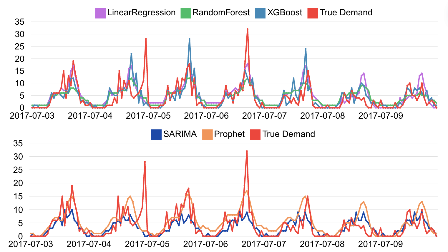 Forecasted hourly BlueBike demand using Random Forest, XGBoost, Prophet, and SARIMA time series models in R with a precision of within 2 bikes, informing strategic dock allocation to enhance system efficiency. Analyzed over 5.4 million bike trips and weather data from 2017-2019, identifying key factors such as temperature and commuter hours to optimize resource allocation and improve customer satisfaction.